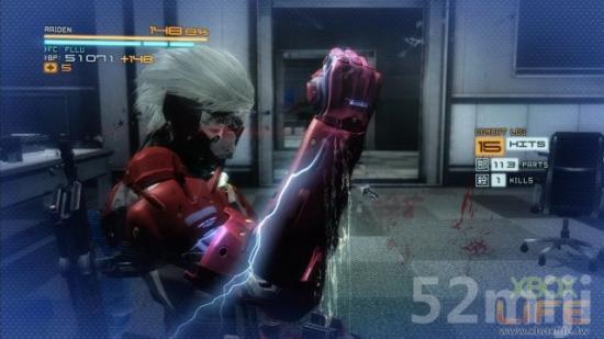 至于战斗系统与操作方面,《合金装备崛起:复仇》主打的「自由斩击」与「斩夺」可说是贯穿整个游戏的系统,虽然说玩家一样可以选择不使用自由斩击与斩夺,单靠武器的轻重攻击以类似无双系列的方式也依然能够通关,不过在头目战中会有非常多强制要玩家使用自由斩击的QTE系统,一旦玩家不使用或是斩击失败就会大量损血,让自己陷入不利的状态;而斩夺系统除了能直接斩杀敌人外,使用后能夺取敌人的能量作为补给也较有优势,再加上想要取得通关后的高评价就必须使用大量的斩夺,因此还是建议玩家熟练这两个系统。不过大量的斩夺加上不断重複的战斗分镜多少会有令人厌烦的重複作业感,但在某方面来说,本作的游戏长度反而刚好避免掉了这样的感觉。