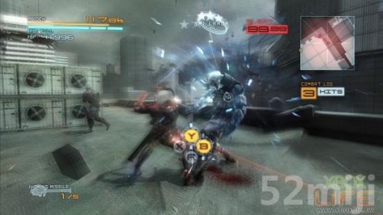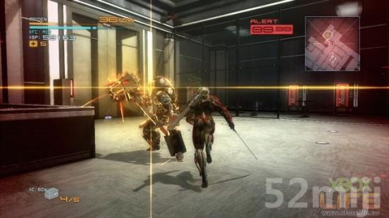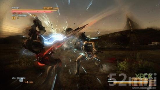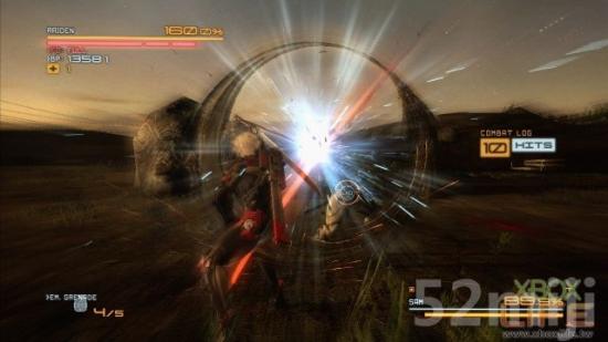 除此之外,在《合金装备崛起:复仇》中最重要的操作莫过于「格挡」以及高周波刀的技能「攻防一体」了。由于本作中的敌人不仅有体型之分,并具有数量优势且攻击欲望和频率都颇高,让战斗时的攻防相当快速,因此可以抵挡大部分攻击同时反弹敌人製造空隙的格挡就十分重要。格挡的按法是将左类比推往敌人方向加轻攻击的X键,许多玩家觉得不好上手或许是因为压住了左类比而没有「推」的动作,在一般的状态下,格挡的作用就单纯只有「挡」的功能,但如果配合敌方出手的瞬间使出格挡,就能同时反弹敌方而製造出我方攻击的空隙,甚至可以造成敌方晕眩来使用自由斩击。唯一要注意的是,当敌方身上发出黄光时所用的攻击无法使用格挡防御。