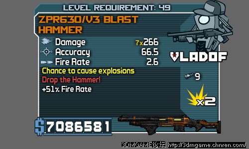 6、最关键的来了,主战武器用锤子!而且要用最高射速2.6的—配合Ogre mod可以最大程度提高DPS。因为在战斗中我们的第一要务是跑位,并不能保证随时都有机会攻击虾哥,所以一旦有了射击窗口要尽量提高开火次数。锤子弹夹的弱点在这里不明显,你的射击窗口不会太长。不用南十字座,因为她射速略慢,攻略低,而且大弹夹基本没机会一次打完。用喷子做主战武器还有一个很大的优点,那就是你无需仔细瞄准!向着虾哥弱点的大概方向开火把,高射速+多弹头会弥补精度上的缺陷,就算因为角度的原因你看不到虾哥的弱点,也可以照喷不误,总会有一到两个弹头命中的;