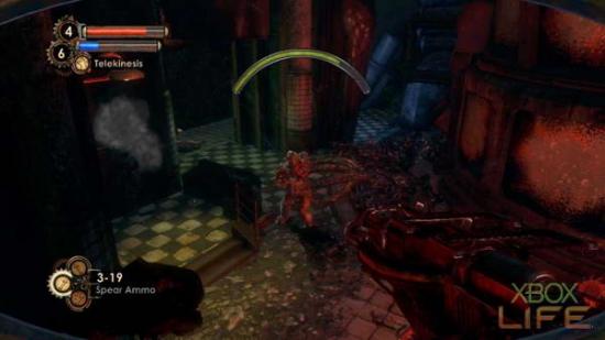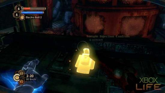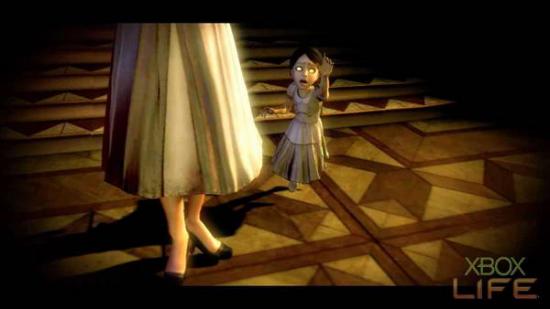 把大姐姐给撂倒后,会触发一段剧情。从昏迷中醒来的Big Daddy,会发现自己被绑住完全不能动弹,接著一名小妹妹爬到Big Daddy身上,并把亚当的抽取器插入后,接著玩家就会开始控制小妹妹来进行游戏。