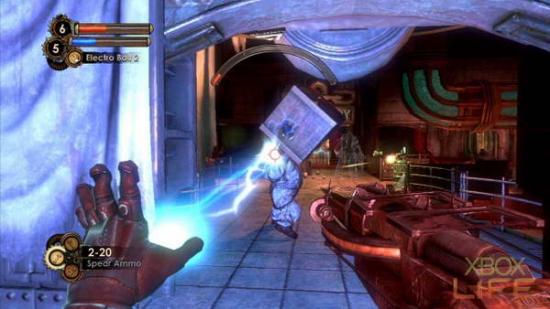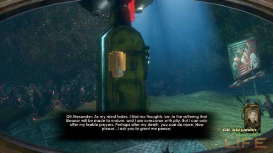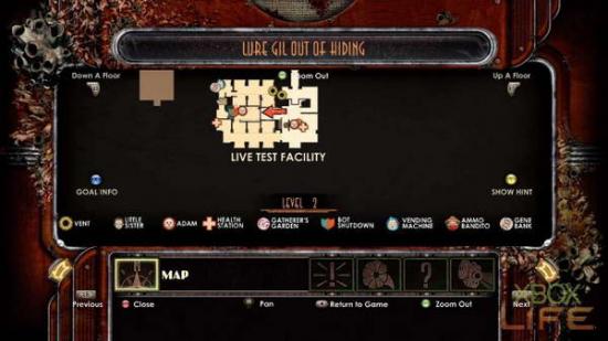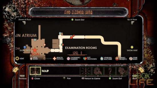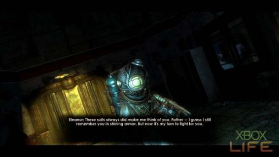 把大姐姐的套件交给Eleanor后,她会把小妹妹变回原样,接著玩家就能操控Big Daddy进行游戏。起身后的Big Daddy会获得最后一项基因能力Summon Eleanor,只要玩家施展该能力时,穿上大姐姐套件的Eleanor就会出现帮助玩家,是个非常实用的技能。接著走到箭头所标示的防水闸门,就能到达下一关。