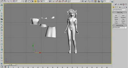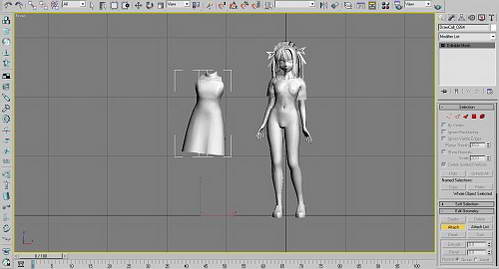 如上图,发现模型是拆分的,但是通过观察,有理由相信这几个部位是构成了裙的样式,所以用attach指令将这几块调好位置整合