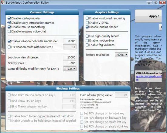 对应《Borderlands Config Editor v2.1.4》帖(进入下载地址),集多种设置于一身,小小解析一下