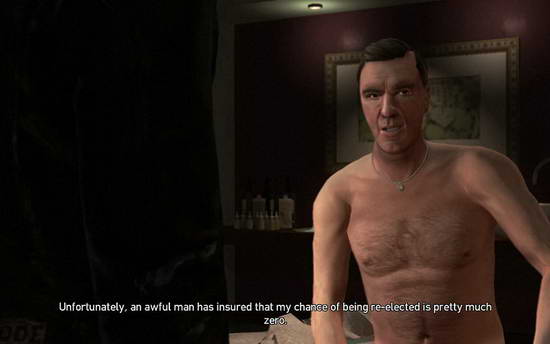 我们的Stubbs 议员果然是心胸坦荡,连身体都是一丝不挂。自然给我们主角的第一个任务就是要干掉他的叔叔