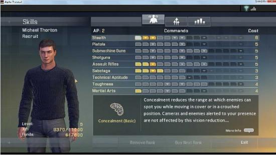 升级系统:和质量效应差不多,打人黑电脑解密码对话什么的都可以获得经验,level up ,获得点数,然后加在各项能力上,大概有潜行、枪械、破坏、科技、格斗、身体素质几个大类,每个大类随着点数累积会解锁新的能力和技能。按各种方向去培养人物。和大部分的欧美RPG系统差不多。