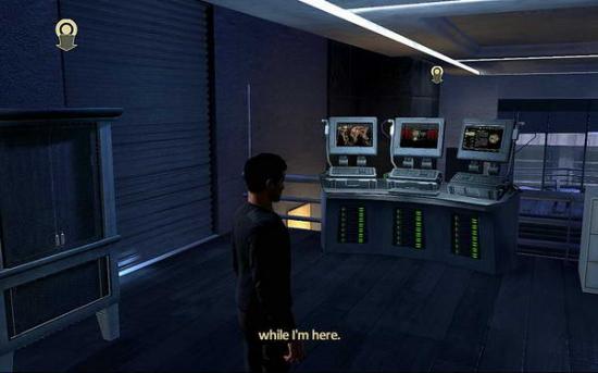 然后一路来到船体最上面,进入电脑室把电脑资料下载下来;自动出现剧情