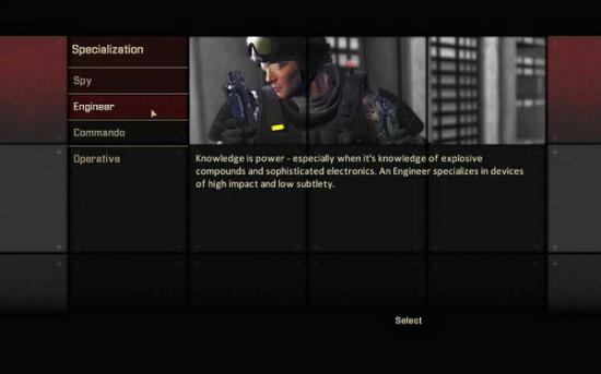 具体分为四大类,SPY,ENGINEER,COMMANDO,OPERATIVE