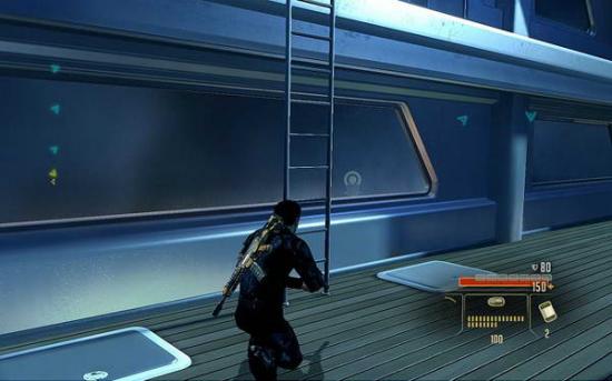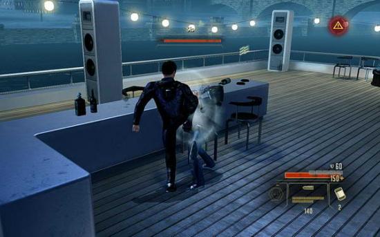 来到游艇,先从右边潜行上去;沿路的敌人可以从背后使用TAKEDOWN干掉;不要按SPACE刺杀掉;会产生声音惊动附近的敌人