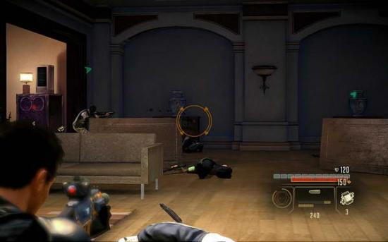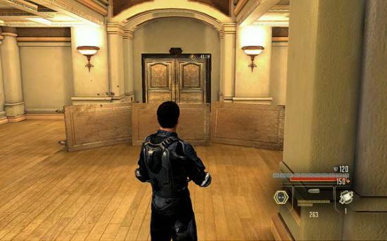 然后沿着大厅左侧慢慢前进;干掉沿路的敌人来到下一个场景