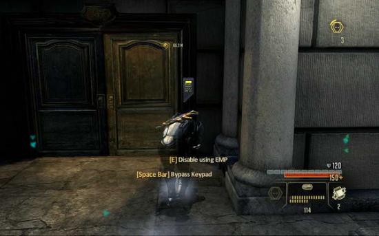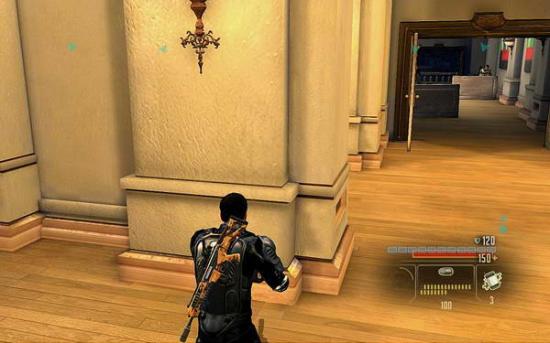 来到下一个通道;先使用STEALTH技能锁喉掉最前面落单的敌人;注意不要狙杀;否则很容易让其他的敌人警觉