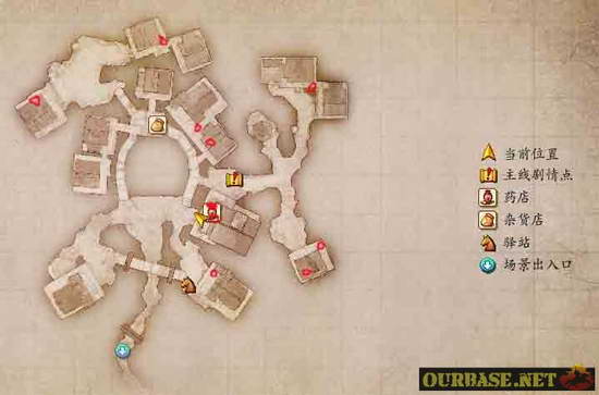 延年药铺(天府金钟符1),民居庚(帝女之霜1),民居丙(扶元散1),村长家(桂皮11,茄子7,面粉16),民居乙(八风散)