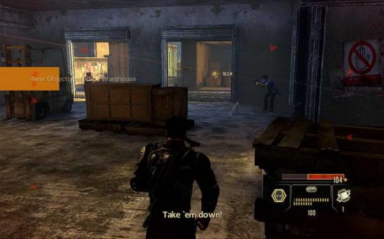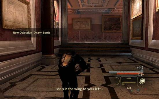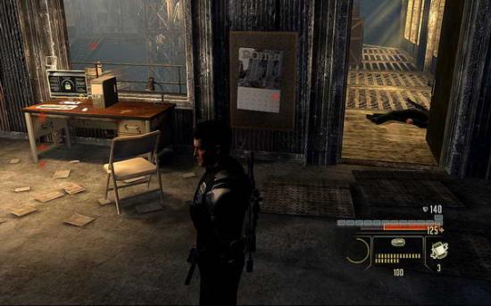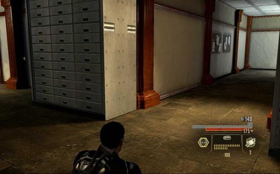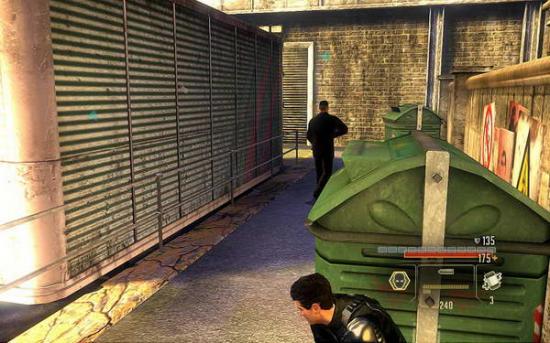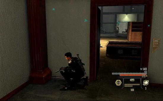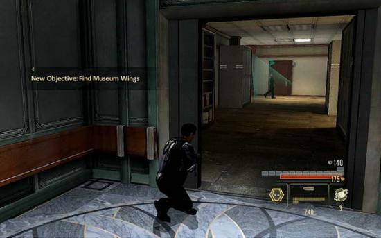 一路继续向前;可以注意到前面的房间;警察和歹徒真在激烈交战。此时不建议你参入到任何一方。因为他们都会把你当做敌人来攻击