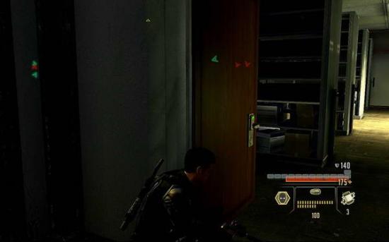 打开前面的门;可以看到满屋子的敌人。这里可以使用隐身技能潜行过去而不被发现