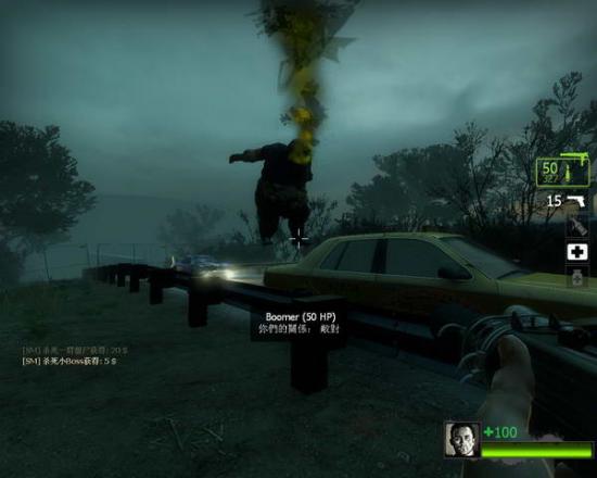 1: boomer(胖子)特点:肚子非常胀. 上身穿黑色的衣服, 仅露肚子. 在l4d中,是一个非常恶心,也非常重要的一只小boss. 且喷的距离比较远. 在DLC中所测试,能从1楼喷上3楼的窗口. 作用:如图所示,吐出绿色的胆汁. 被吐中的,就会引来僵尸群围攻,而且只围攻吐中的那人.胆汁效果完全消失后,僵尸群将会恢复正常.但是基本上来说, 等僵尸群回复正常的时候,僵尸群已经所剩无几或者一只不剩的. 缺点: 血少,仅仅的50血,沙鹰打中一枪立即没命.任何类型的枪,只要爆头就会立即爆炸. 爆炸的时候,胆汁会溅射,小心被溅射到,被溅射到一样会引来非常多的小僵尸. 同样跟上面一样的效果.