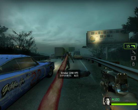 5:smoker(烟鬼)也可以叫长舌.特点: 1代里面,身穿绿色的衣服.2代里面身穿灰色的衣服,其实穿什么衣服不要紧.特点就是走的时候会围绕着病毒.走过的地方,如果短时间内会留下病毒跟踪的效果,如果定在一个地方,且听到smoker咳嗽的声音,而且看见一团绿色的烟,就是smoker了. 作用:远距离或者在楼顶这些非常阴险的角落吐出舌头,从而将幸存者拉过来打. 拉的时候是不掉血的,除非遇到障碍物,比如在屋顶拉,那么是不可能直接拉上去,就会造成吊着这样的效果.吊着也是会掉血的, 跟拉到身边打一样.专家难度下,30血每下. 弱点:舌头有韧性,容易被烧断,打断. 其实只要打死smoker的本体,舌头就会跟着断.而且不让机会给smoker跑掉.从图中看,smoker有250血.跟hunter一样,但是沙鹰一枪爆头即死,刚才我截图的时候,难度是普通的,手枪一枪爆头也即死.专家的话,2枪必死爆头.
