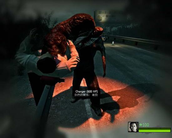 7:charger(犀牛)特点,右臂非常强壮,左臂残废了.而且他的头是平的 喜欢以西班牙斗牛的方式冲过来,首个被撞倒的就会被抓住,其他在后面的将会被撞飞,掉下来可是很疼的. 注意躲开. 作用:被抓住的幸存者会被按在地下.无法动弹,虽然压在地下的攻击不高,就算是专家难度,按5秒以上也不见得会倒地. 但是这个家伙有600血,非常硬的护甲.弱点:虽然被枪打中,冲击的速度也不减, 但是弱点就是怕高爆弹,冲击的时候高爆弹可以令他停止.而冲过来的时候其他队友可以用近身武器砍他, 但是1下绝对不可能死,要2下。因为有600血, 近身武器1下是400血.如果已经被人家打了几枪的,就没问题了.