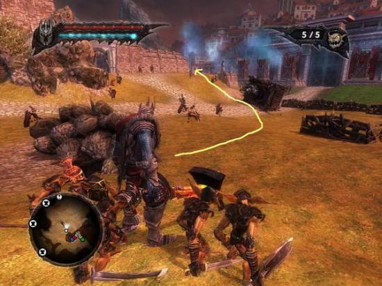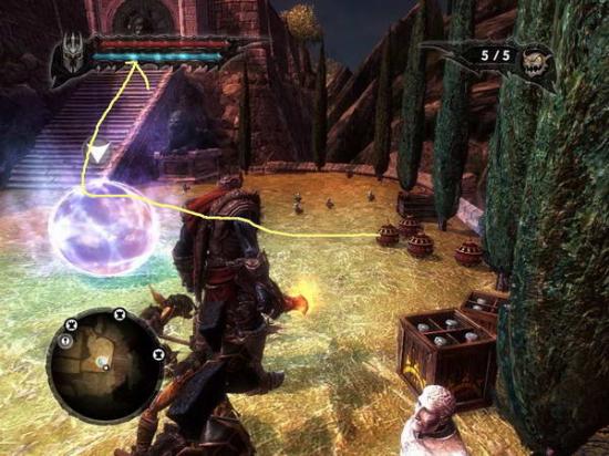 这里推荐带5只红鬼就行了,让他们扛着球体,按路线前进,路线图中去撞倒那个云梯,敌人就军心涣散了,前方有巨石堵路,站在巨石面前不一会就会听见投石车声音,赶紧跑开,通路被炸开,来到如(图48)