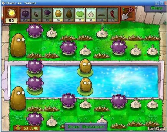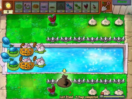 地钉流:以大蒜引导,让僵尸们乖乖地踏地钉,效果不错。
