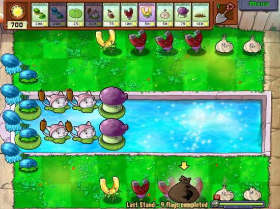 地钉磁铁流:由于铁桶和棒球僵尸防高,于是用磁铁对付,不用猫咪的辅助攻击一样行。