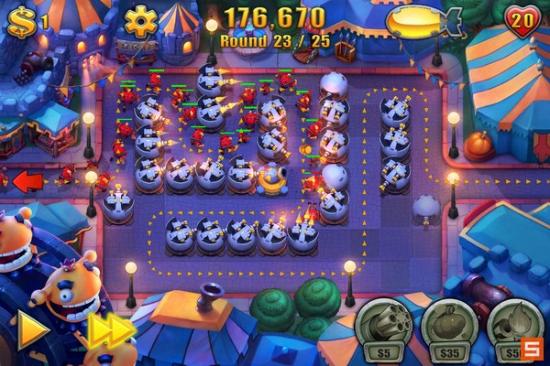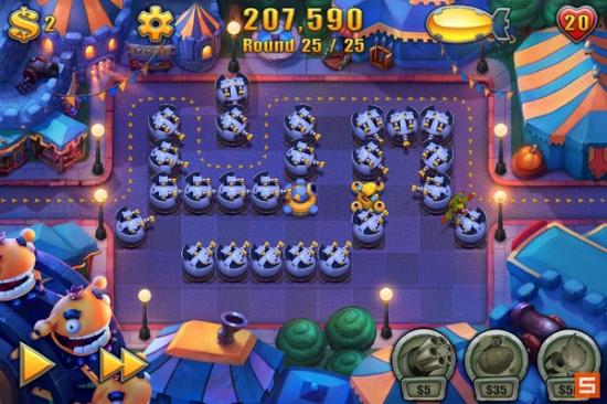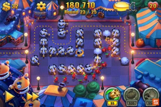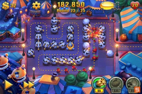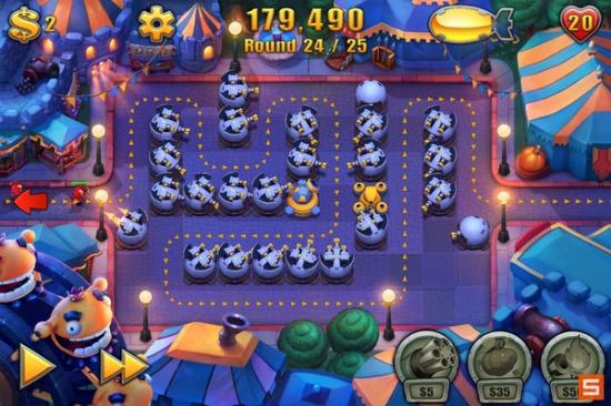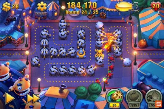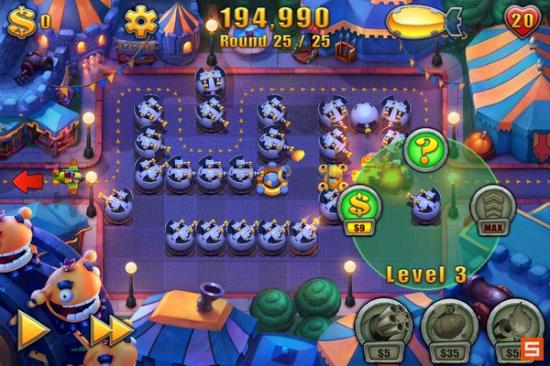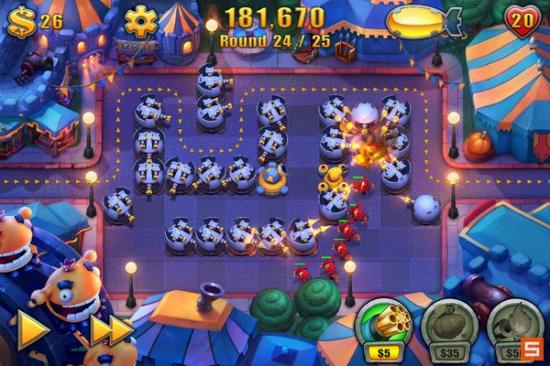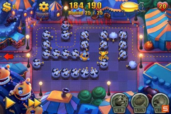 第24轮开始前,还原门并拆掉中路的1级塔,钱刚好够造本关终极武器:喷火塔!