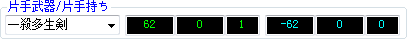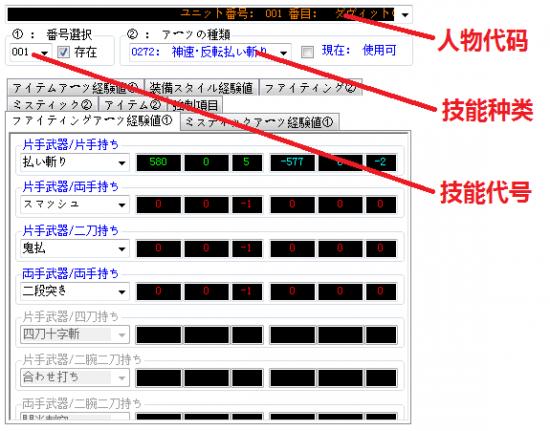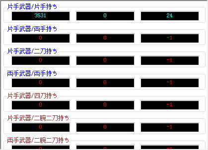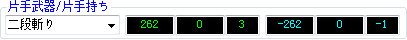 注意这个表,每一行表示了一种武器持法方式,现在显示的是【神速 里冲切V】的技能状态: