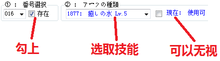 技能种类:这个就不用多解释了,不过要注意里面包含了战斗中的行动指令,所以不要乱选