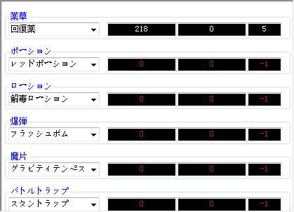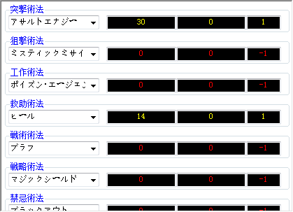 法术和道具技能表类似,只是少了前缀数值: