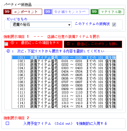三个99分别对应的是以上三个系列获得多少。。。例如マテリアル前的99改为1,全部零件都获得1个。改为0就算消除该系列的全部道具。