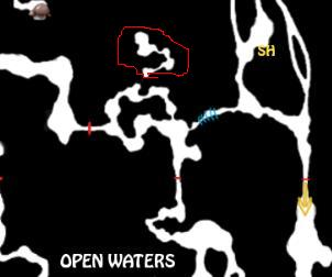 第三个在开放水域和海藻森林之间区域的西部(有很多章鱼卵的地图),正中间有条鱼形态可以穿过的路,连接到一条沉船,沉船尽头。