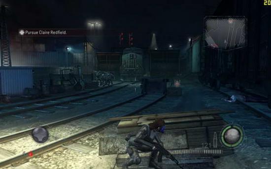 到了火车站附近,解决几波僵尸,不要管平台上的LEON CLARIE。冲进美军基地,爬上梯子,触发剧情。