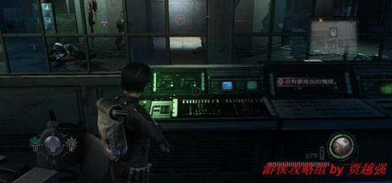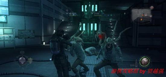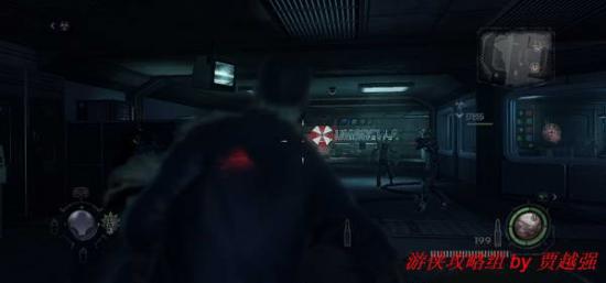3.启动目标电脑后进入一旁的电梯.进入安布雷拉研究所.出电梯后有一处情报,消灭杂兵后在另一扇门后触发剧情,遇到一类被虫子寄生的丧尸,附近下阶梯可以找到蓝色钥匙卡.新丧尸所在的房间已经上锁,只能跑向任务的指示处.然后你就能见到被困在镭射激光网内的丧尸,尽头有处断路器,拉下它.镭射网会被关闭,杀死丧尸取走注射器.四周的场景有不少数据,建议无视,按提示找到那个躺在镭射网内的复仇女神失败品,用注射器取出他体内的寄生虫.完成后提示离开研究所.附近的地上有把毁灭者.