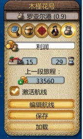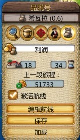 会显示走完这一圈要多少时间,我的这个是34天走一圈,经过18个港口,盈利5万多(盈利的话要走好一圈,第2圈的时候才显示出来的)