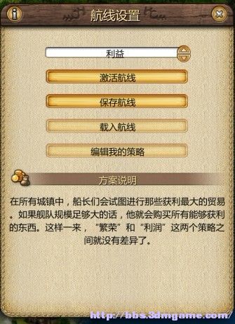 就跳出这个图,会自动切换到大地图,然后按照你心中要走的线路,挨个点击大地图上的城市,基本上按照一个循环来走,不要交叉点,不染会走冤枉路,注意最多18个 港口.......点选完18个港口在点设定(注意)会出现下面的图