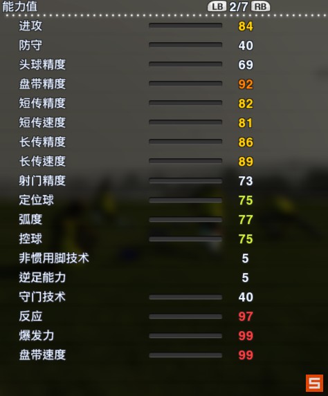 再切换回游戏里面!随便加一项,比如:把射门加满,再打开修改器。在搜寻目标里收5!注意了:这里是搜寻5而不是6!因为我们只加了5点。浮动变数只有5点!然后点搜寻