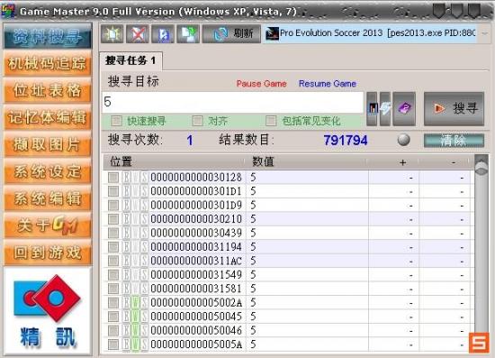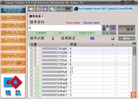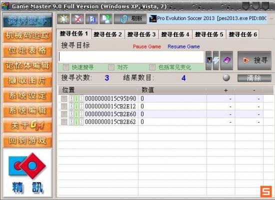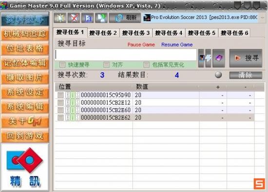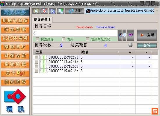 再切回游戏,最后在射门上再减一点!最后一步切回修改器搜寻3.。最后出现4个位置!