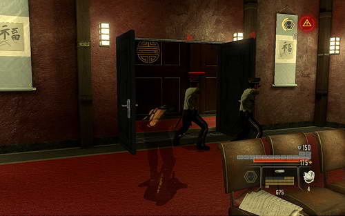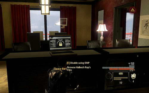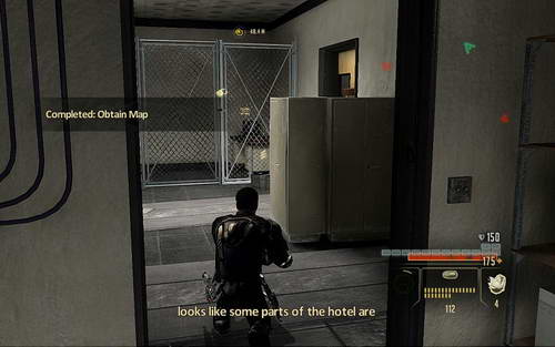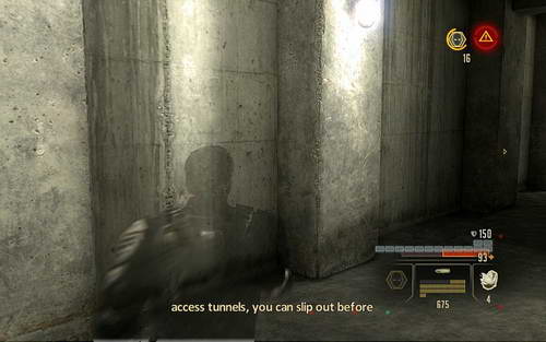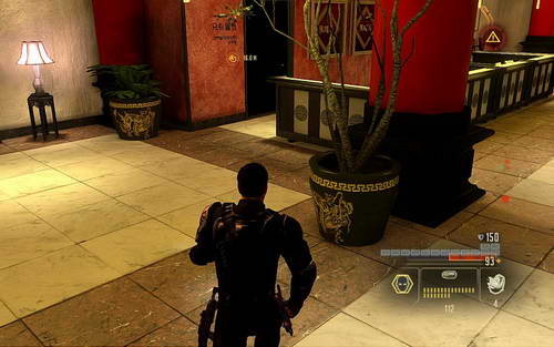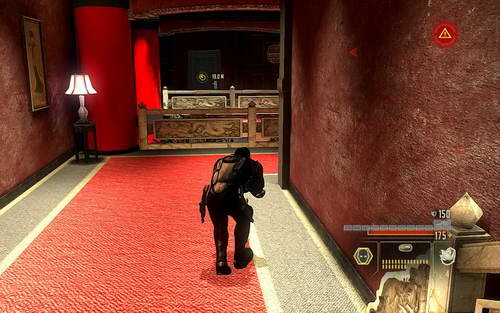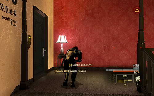 然后上到16层,这个时候全楼层的警报都被拉响了。所以所有的敌人都处于高度警戒状态。而你又不能大开杀戒。所以能躲过去就躲过去。譬如下图则可以一路冲过去
