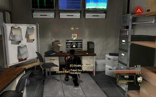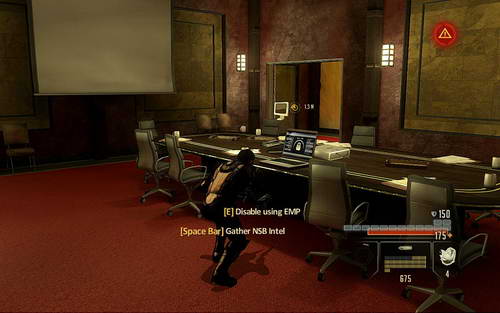 然后从一边的电梯下来;来到总统会议室。吧这里的电脑HACK掉,获取第二份资料