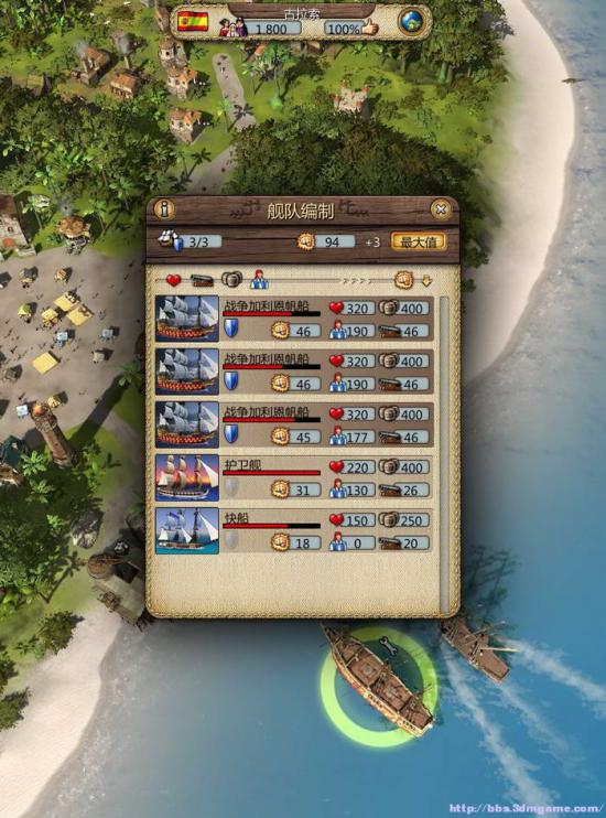 一支舰队只能编制三艘参战船 其他船只不参加战斗 捕获来的船可以在港口管理中(点击灯塔)进行解散并重新编组(另作它用)