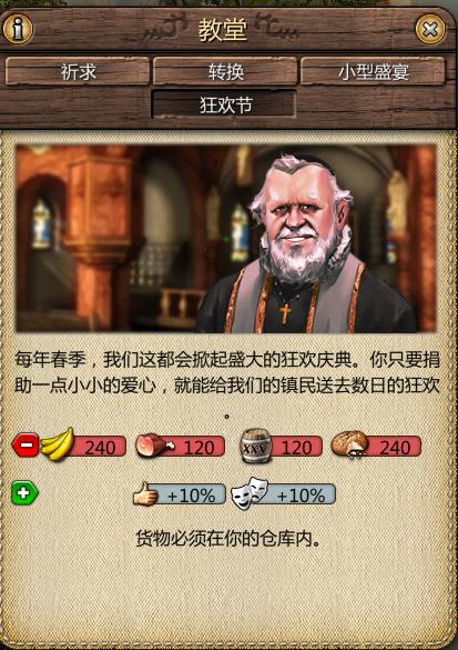 第二项繁荣,是我最头痛的问题。一般来说,小城市弄的繁荣很简单,因为需求少。但我往往要拿的大城市,怎么办呢?教堂!给了我很好的启发,狂欢节