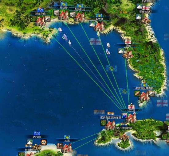 这是相当不错的一个设定,你想要占得城市往往都是大城市,你要做的先是把2-3个贸易舰队开过来,设置繁茂,让舰队尽可能多的路过你要接管的城市。如图。