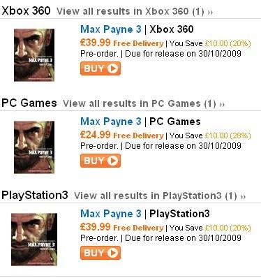 英国电子零售商店Play.com现已开始接受《马克思·佩恩3》的预订,其中X360/PS3版要价39.99英镑,PC版则只要24.99英镑。