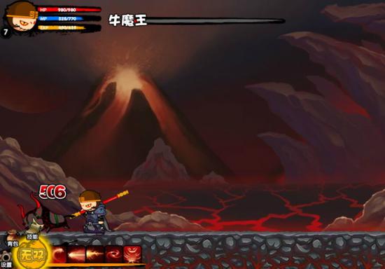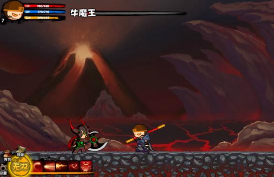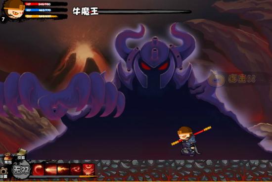 再重新申请注册一个游戏账号,1级的悟空挑战牛魔王,好刺激啊,哈哈!