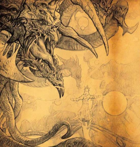 最终祂下定了决心,身体中的恶念以及负面能量,在创世神艾努的一个念头中,就全部离开了祂的身体。但这些邪恶的能量却无法就此消散于无形,包含愤怒、恐惧、毁灭等无形的七种负面能量聚集起来,成为一隻邪恶的七头龙,同时也是艾努的死敌,祂被称为塔莎密特(Tathamet)。