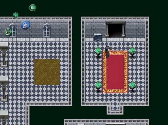 空气墙前右转上楼,右侧点亮水晶(迷题三)后 到图上所示地板处C一次(迷题一)