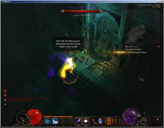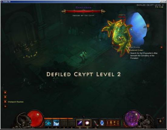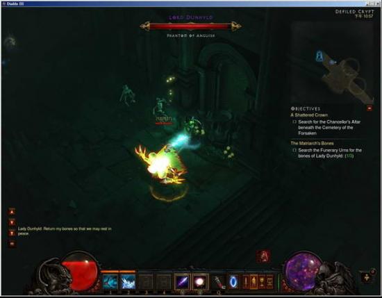 在被亵渎的墓穴二楼要开门的时候要小心,很多玩家在门开了之后就会立即被撞飞。由于血量多,攻击力又强,若玩家装备不够,建议慢慢拖著往外风筝,若已经拖到前一个楼梯,控场一下回头再继续风筝即可。