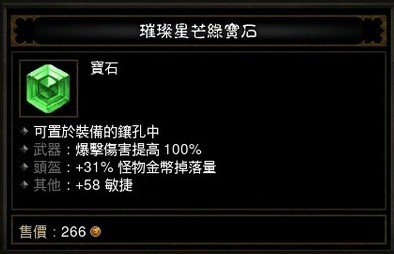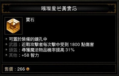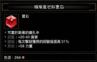 | 头盔:获得魔法装备% | 5% | 7% | 9% | 11% | 13% | 15% | 17% | 19% | 21% | 23% | 25% | 27% | 29% | 31% |