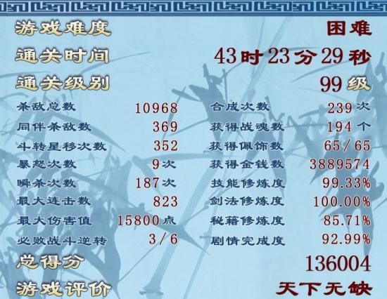 困难模式无修改通关(99级是最后在恶人谷狂刷练的,纯粹是弄个称号玩,下图才是刷级前的属性图)