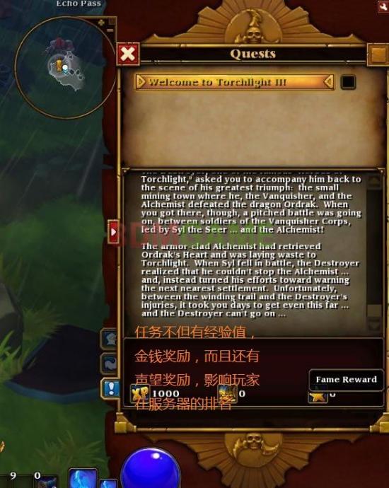 本作新的一点就是完成任务不仅仅会有相应的金钱,经验奖励;而且还有声望奖励。这个应该是会影响玩家在服务器的排名