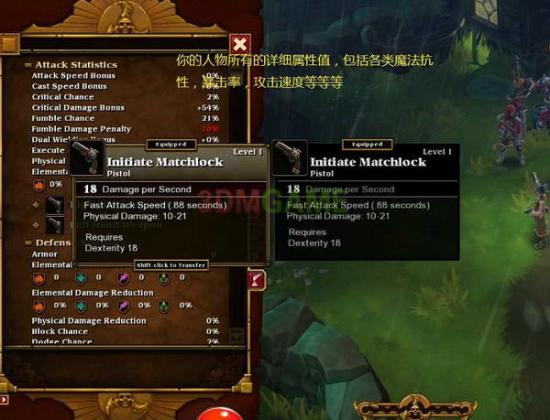 左边的三个边栏大部分都是你的人物的升级和详细的属性。本作将属性分解的很直观,如力量则是与你的物理伤害有关,而敏捷则是影响你的暴击能力