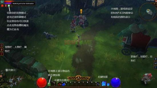 这里稍微注意一下,宠物的模式最好保持在防御模式;因为整体的游戏进程你会经常处于成群的怪物包围之下,如果你不想太浪费那些药品的话还是让你的宠物乖乖在后面给你当搬运工吧